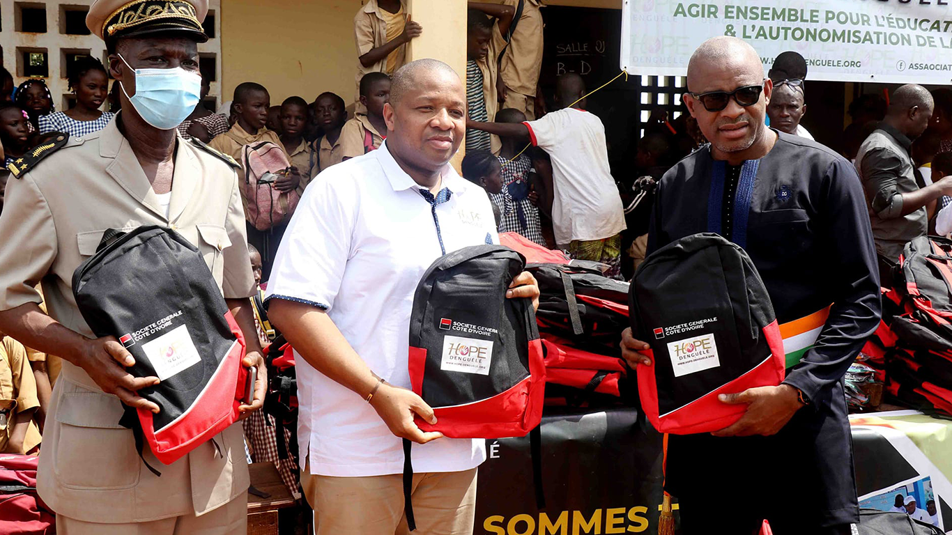 Chaque année scolaire, le président de Hope Denguélé, M. Ousmane TOURE, organise une distribution de kits scolaires en faveur des enfants défavorisés.