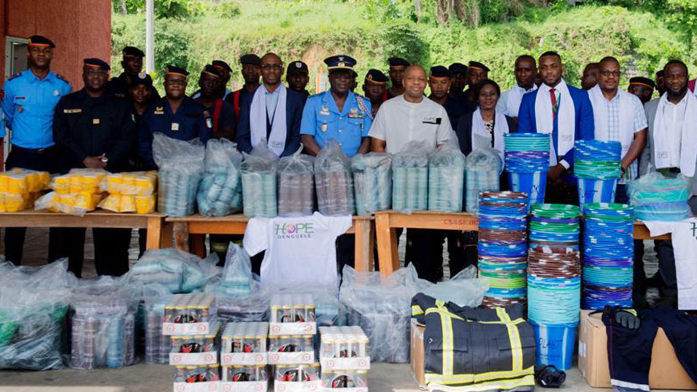 En vue de contribuer à l'amélioration de ses capacités logistiques, Hope Denguélé a fait don de plusieurs équipements aux sapeurs-pompiers militaires de Côte d'Ivoire basés à l'Indénié.